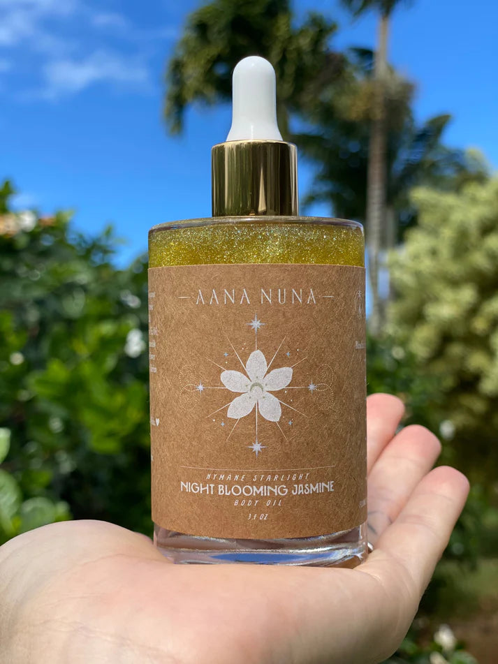 She now resides on beautiful, lush Kauai where she can source her original favorite star ingredient- Vanilla Beans. Using Kauai grown Vanilla Bean makes each batch so much more fresh & local. Vanilla bean is infused into all the oil & perfume blends. Vanilla is rich in antioxidants and has a wonderfully soothing, calming, grounding scent that feels nourishing to the soul & skin. Aana Nuna skincare oils are handmade in small batches with cosmic infusions once a month, under the full moon, new moon & starlight.