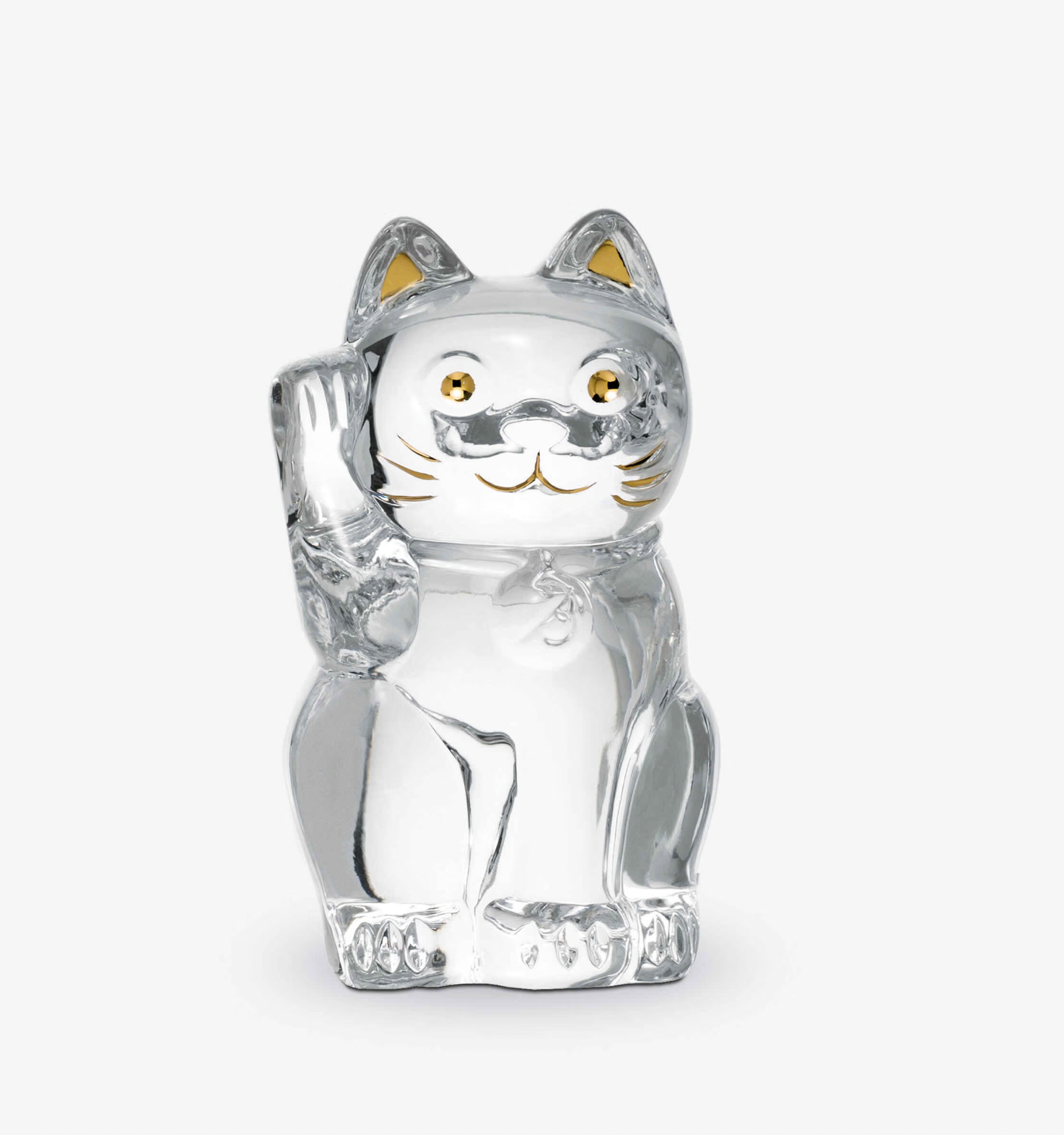 The Lucky Cat is a special charm of Japanese origin. The calico Japanese bobtail is often displayed at the entrance of one’s home, as it is intended to attract fiscal good luck. The feline creature with cartoonish features is seen beckoning with its right hand—a gesture that is said to protect one’s fortune. This Baccarat Clear crystal cat, or the Maneki-neko as it is called in Japanese, has a lot of careful detail. Baccarat’s painstaking technique are evident in the paws, the facial features, and the collar. Additional gilded flourishes are applied to the cat’s ears, eyes, mouth, and whiskers. This emblem of luck is a meticulously crafted piece that could draw good fortune directly into your home. The Lucky cat is also available in midnight crystal.