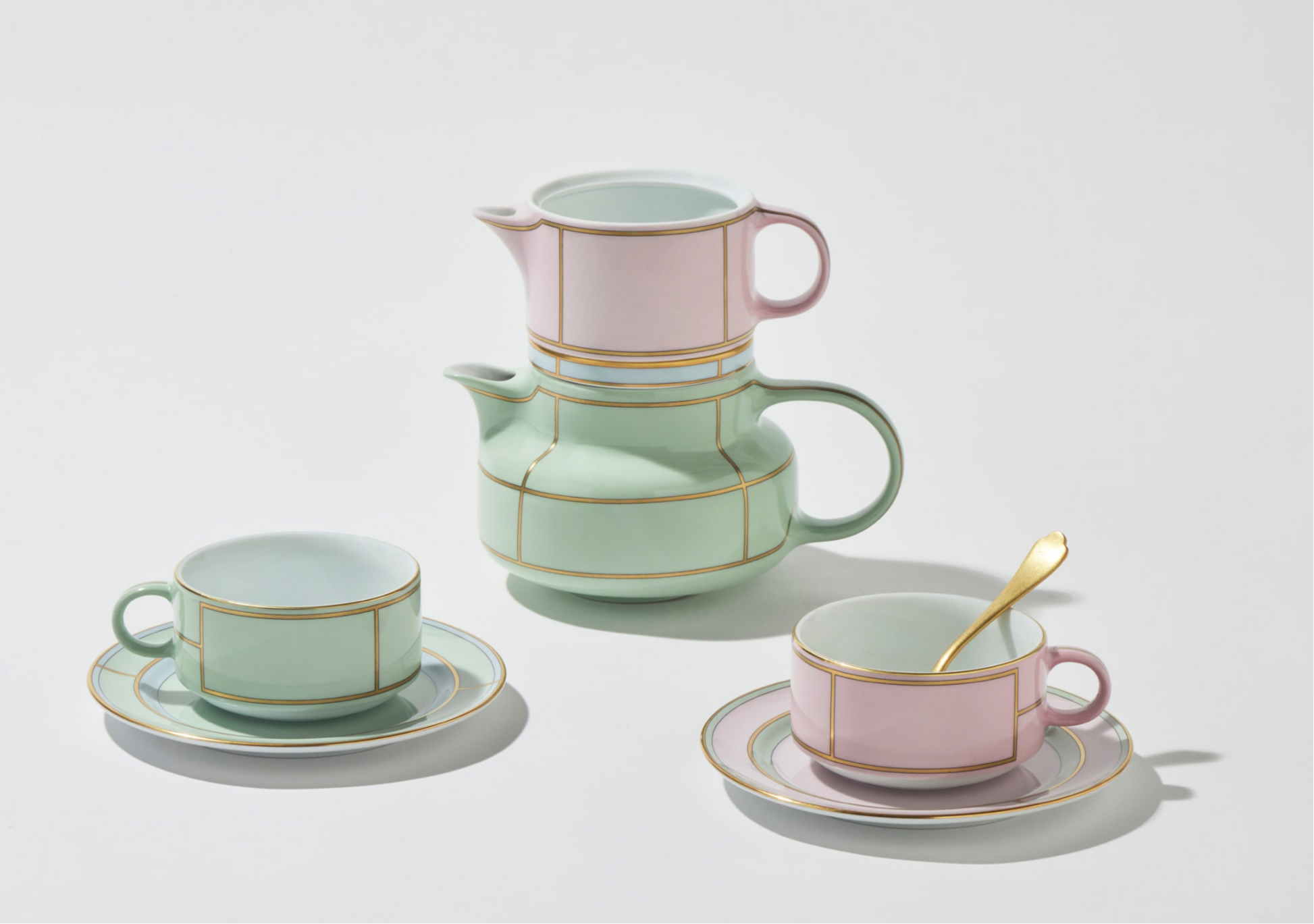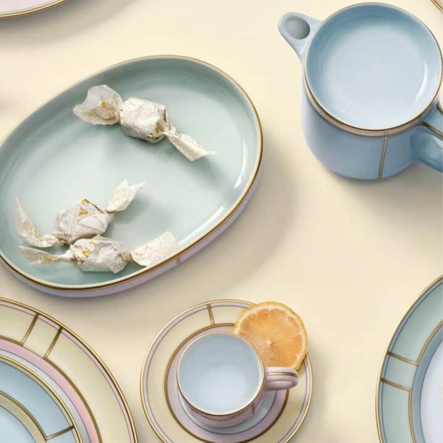A decoration distinguishes the piece and exquisite gold threading that illuminates the fine porcelain. It complements the tea and coffee services of thesame line alongside the cups and saucers, sugar bowl, teapot and coffeepot allof which are designed to be coordinated in various combinations of the fourpastel hues available for a vibrant and colorful mise en place. Effervescent,sophisticated and functional, Diva exudes the glamour of a bygone era withcontemporary flair as it celebrates the elegance of the great divas of 1950scinema. It is drawn from the Colonna collection, a mid-century icon of designconceived of by Giovanni Gariboldi and given of the prestigious Compasso D'Oroaward. Diva features stackable elements perfect for storing in small spaces.