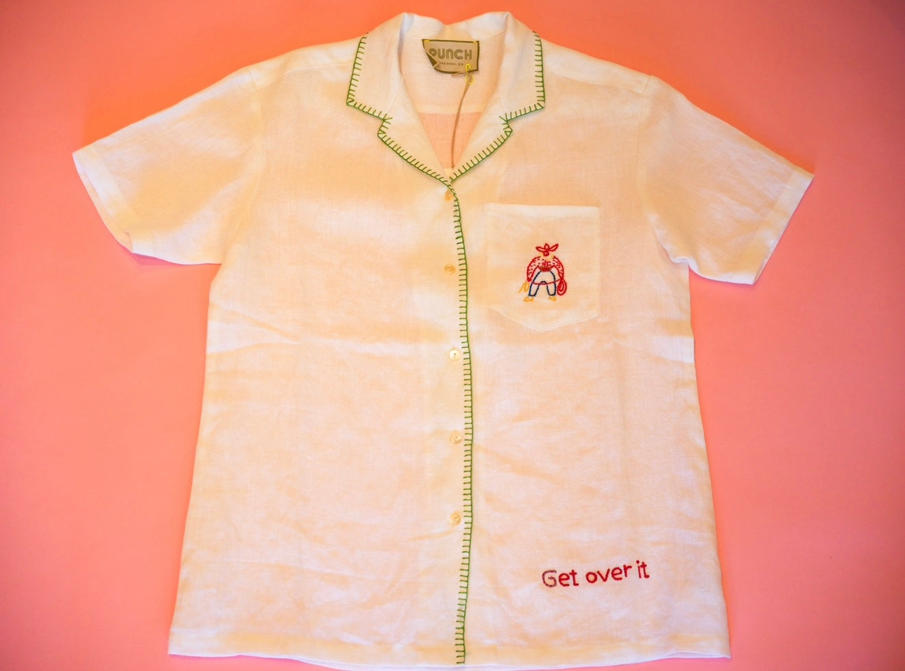 Tropical Punch 100% Hand Embroidered Linen Button-Down -Get over it