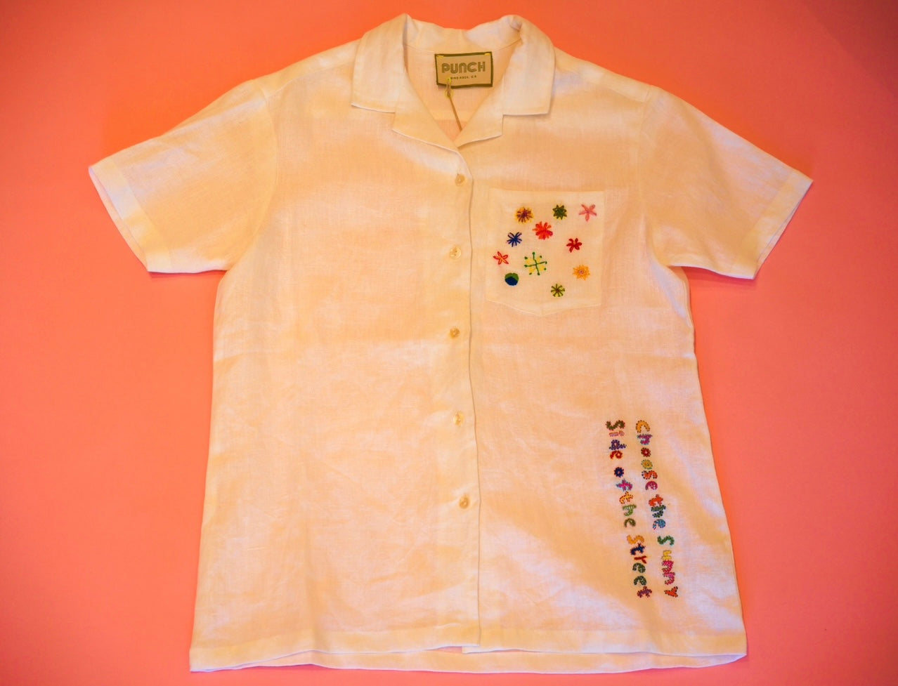 Tropical Punch 100% Hand Embroidered Linen Button-Down-Choose the sunny side of the street