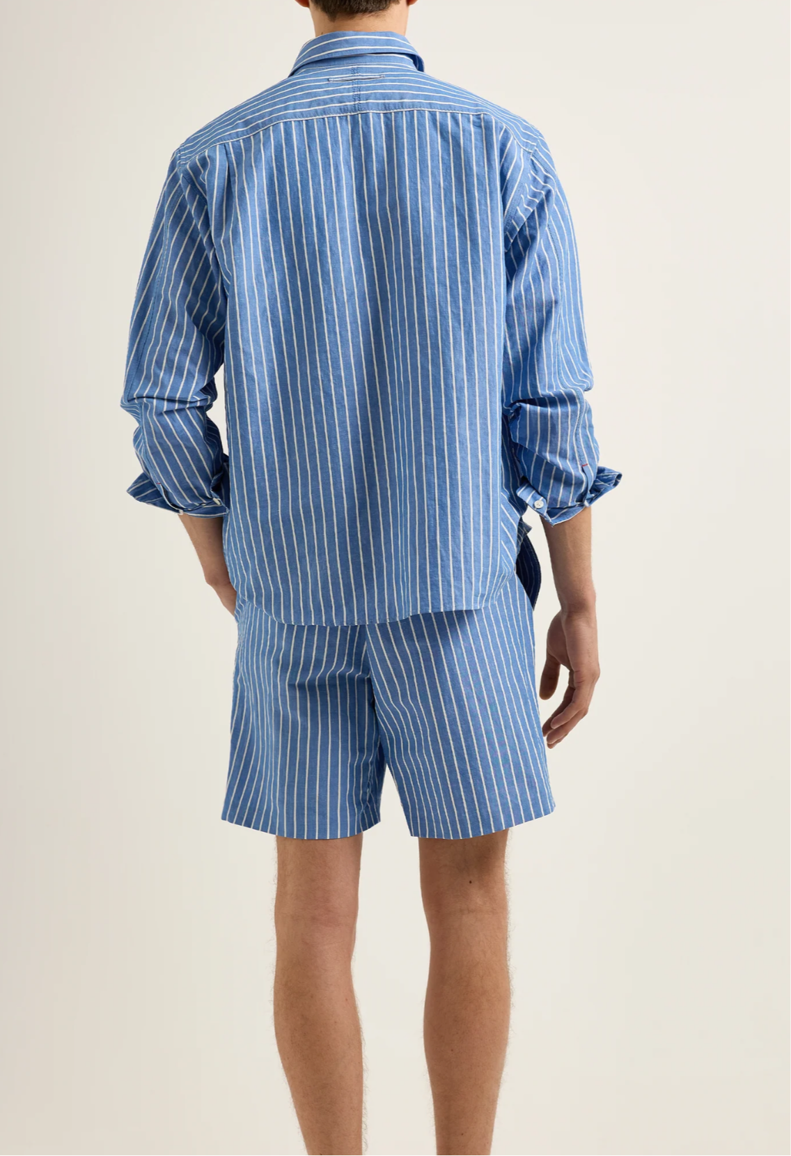The Deckchair Stripe - structured just enough to hold the chaos without ever trying to tame it. A print that knows that perfection is overrated, that the best moments happen somewhere between the lines. The Alex short, lightweight, fine knit. Half elasticated waist wiht a chic drawcord. A relaxed fit that never feels careless, cut for days that unspool at their own pace. No rules, no obligations - just the simple pleasure of being exactly where you are.