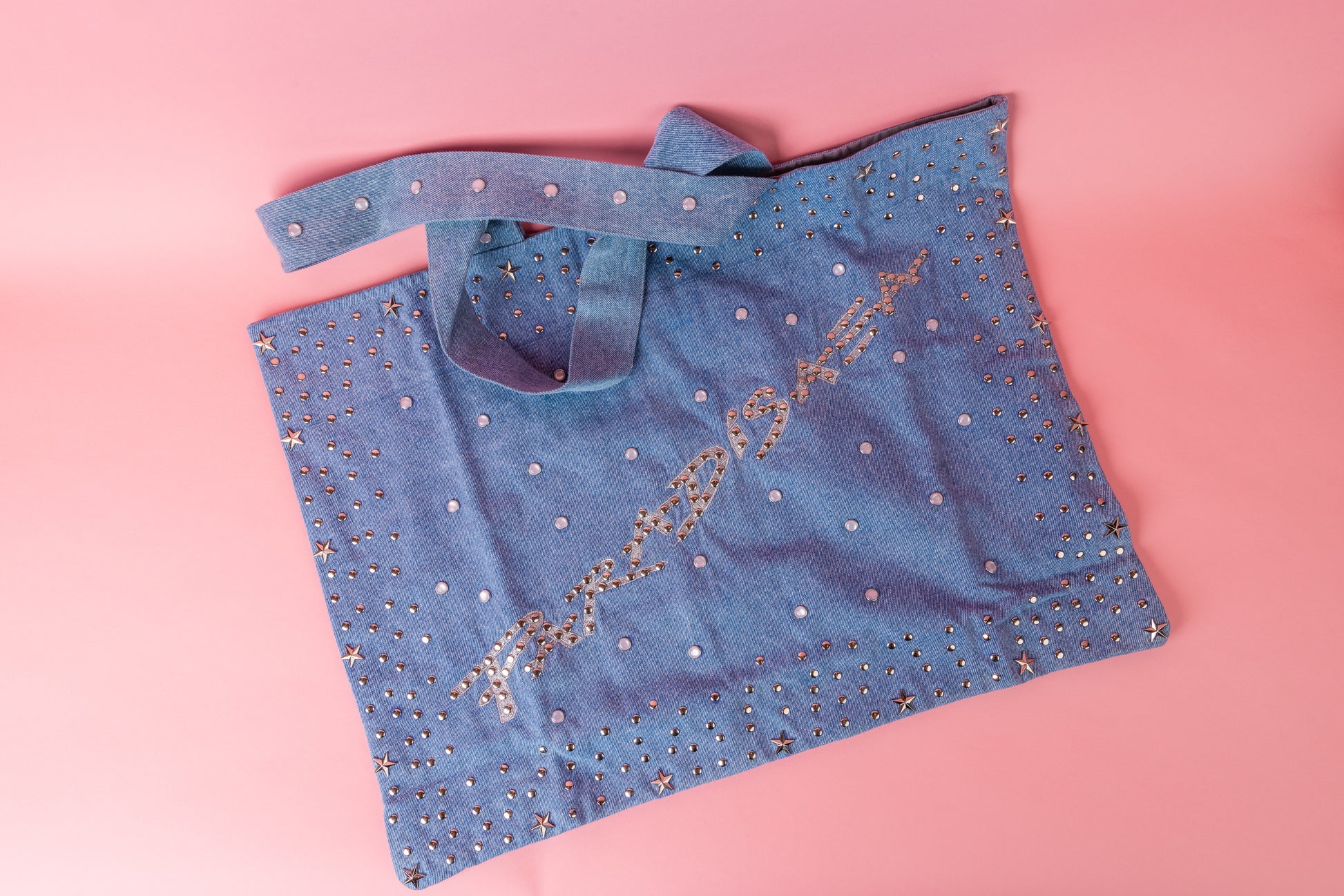 100% denim with studded details. Stylish and durable design